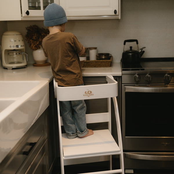 Is your little one eager to help in the kitchen but can't quite reach the counter? Or, is their imagination taking them to a faraway land where 360-viewing of premises is needed for safety? The Kinderfeets Observation Tower is a versatile Pikler item designed for imaginative, educational and functional play of all kinds!
