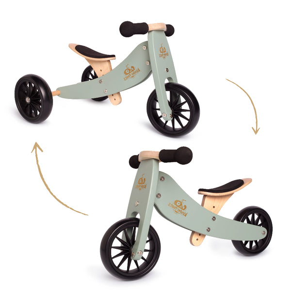 Introduce your "tiny tot" to the fun of biking with the Kinderfeets TINY TOT 2-in-1. With the ability to convert between tricycle and balance bike (all parts included), this versatile wooden toy will bring your child plenty of enjoyment and challenge as they build up their understanding of balance, steering, and coordination.